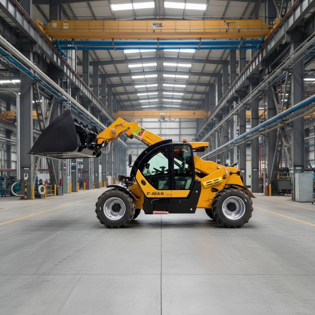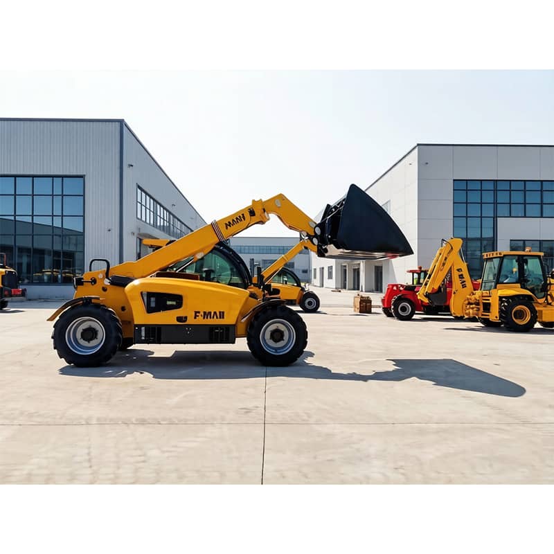 The FM8357 Telehandler is a multi-purpose engineering machine for material handling and high-level stacking operations, suitable for construction sites, warehouse loading and unloading, agricultural ranches, and industrial settings. The machine balances lifting height, reach, and load capacity, enabling pallet handling, high-altitude loading, and equipment installation.