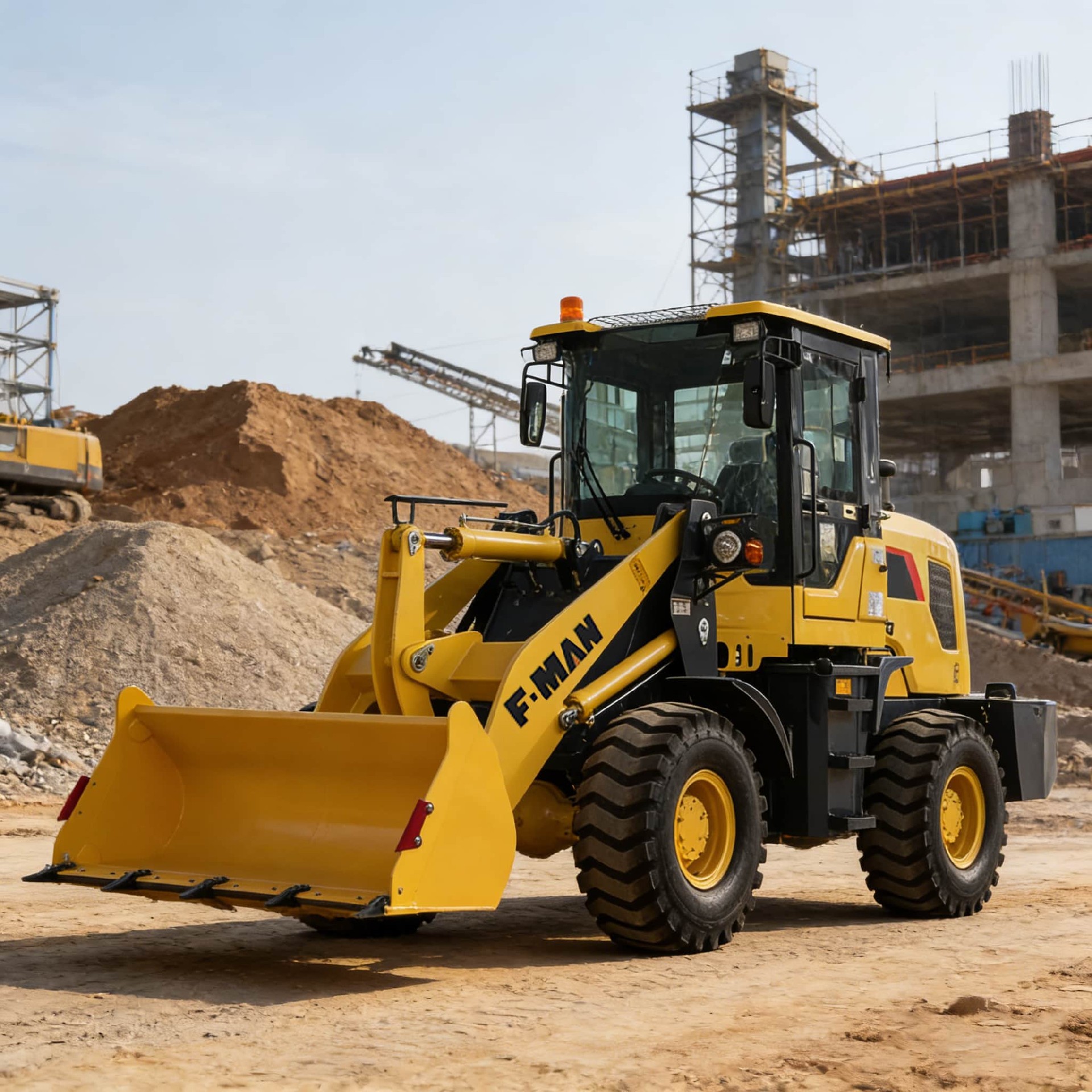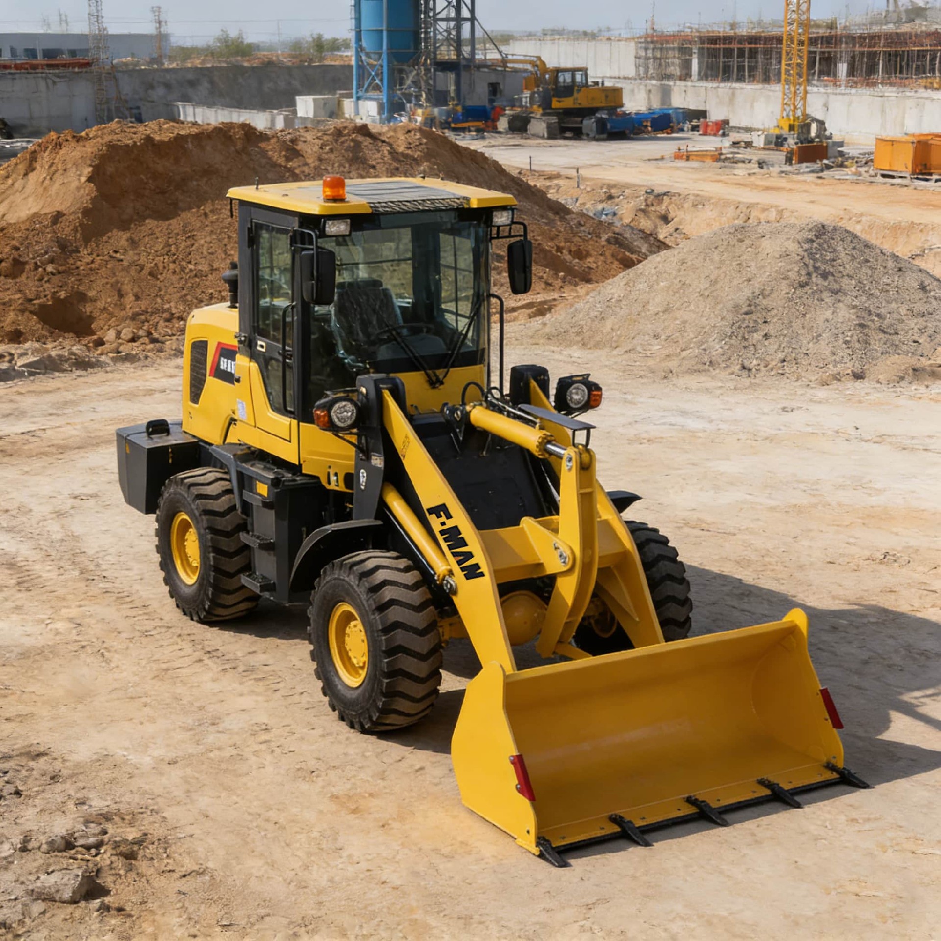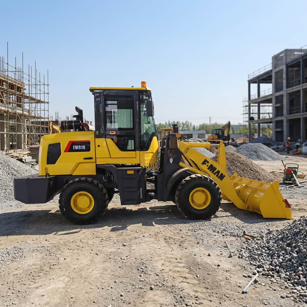 FMAN FM910 wheel loader is a small loading equipment developed for multi-scenario operation needs. The machine features a balanced configuration, compact structure, and combines operational efficiency with flexible handling. It is widely used in construction, agriculture, and mining industries. Its main function is to load and transport various bulk materials, such as sand, soil, and ore. The 3600 kg operating weight and 800 kg rated load are well-matched, and with the standard 0.56 m³ bucket, it maintains stable and efficient loading performance under various working conditions.