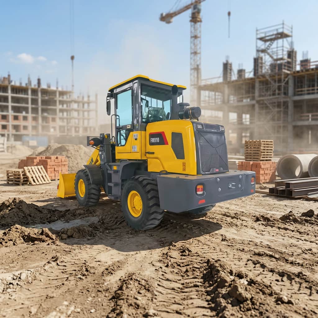 The FM910 has dimensions of 5820 × 2740 × 1822 mm, offering excellent maneuverability and flexible movement, especially suitable for confined spaces or complex working environments. The machine design emphasizes reliability and ease of maintenance; key components are rationally arranged, making daily inspection and maintenance more efficient. It is a practical, durable, and economical loader solution.