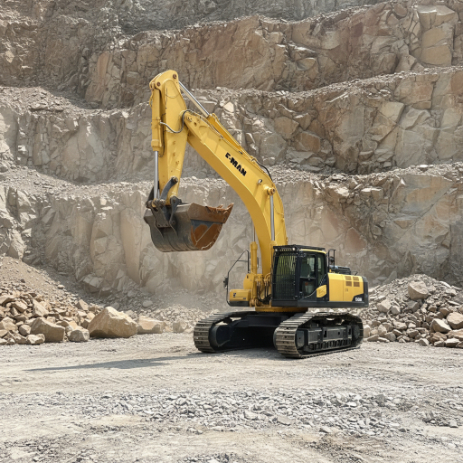 The FMAN FM378 Crawler Excavator weighs approximately 71.2 tons and is equipped with a Cummins engine. The QSX15 engine, rated at 354kW, delivers strong power and stable performance, meeting the high-intensity operational demands of large-scale mining, earthmoving projects, and large-scale infrastructure construction. The equipment utilizes an advanced hydraulic system equipped with a Kawasaki main pump, boasting a maximum flow rate of 360L/min x 2, ensuring high efficiency and responsive operation. The machine has a maximum digging height of 11165mm, a maximum digging depth of 7190mm, and a maximum digging radius of 11750mm. Equipped with a 4m³ standard bucket, it possesses powerful digging capabilities and loading efficiency. The robust and durable tracked chassis structure, combined with wide track design, ensures excellent stability and maneuverability even in complex terrain. The FM378, with its reliable structure, large operating range, and ample power, is suitable for mining, quarrying, and large-scale engineering construction, providing a highly efficient solution for heavy earthmoving operations.