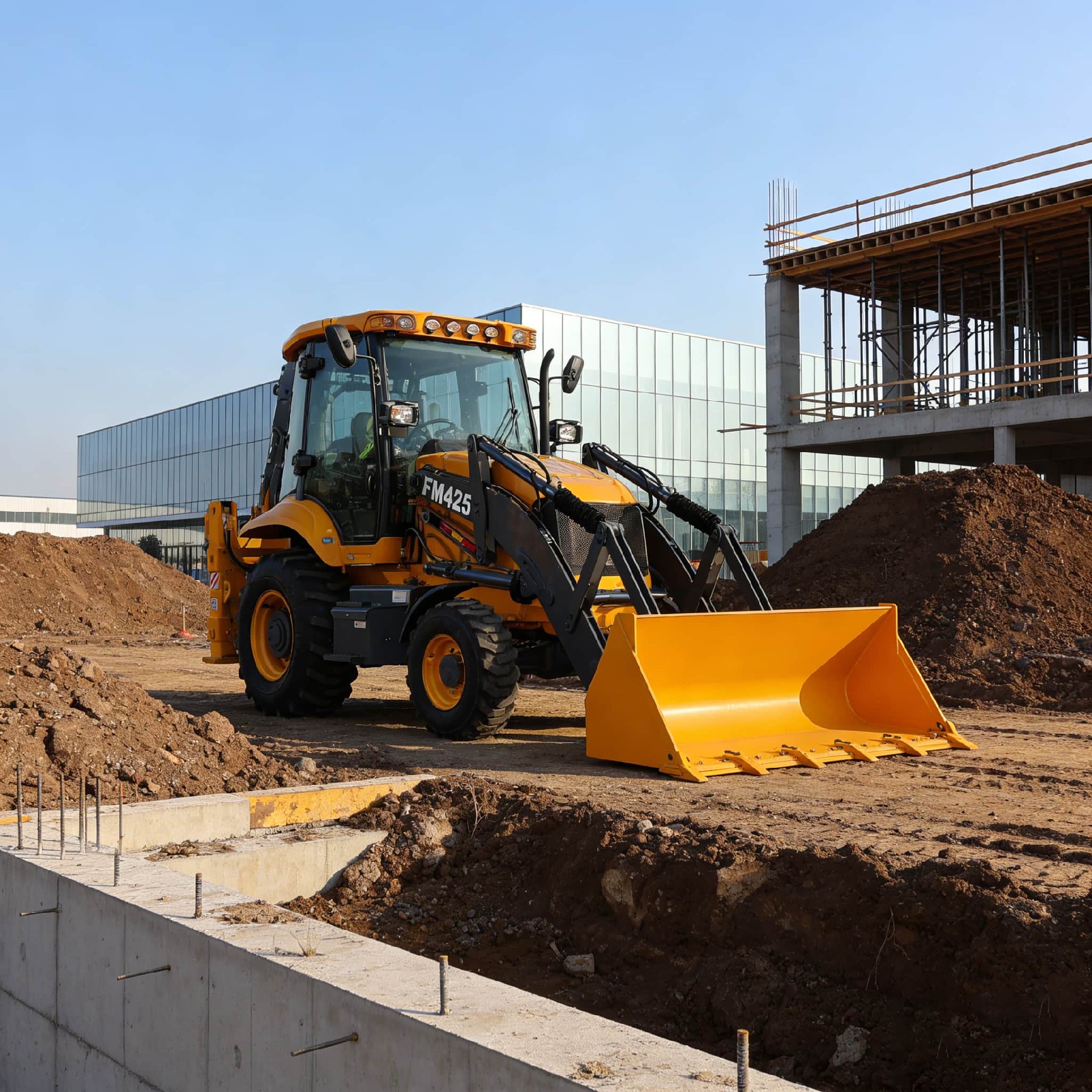 The FM425 backhoe loaders are primarily designed for high-mobility operations such as municipal construction, road building, and urban infrastructure. Both models utilize a mature and reliable power system, come standard with A/H outriggers, feature a compact layout balancing operational stability and maneuverability, and support a variety of optional attachments to meet diverse construction needs.